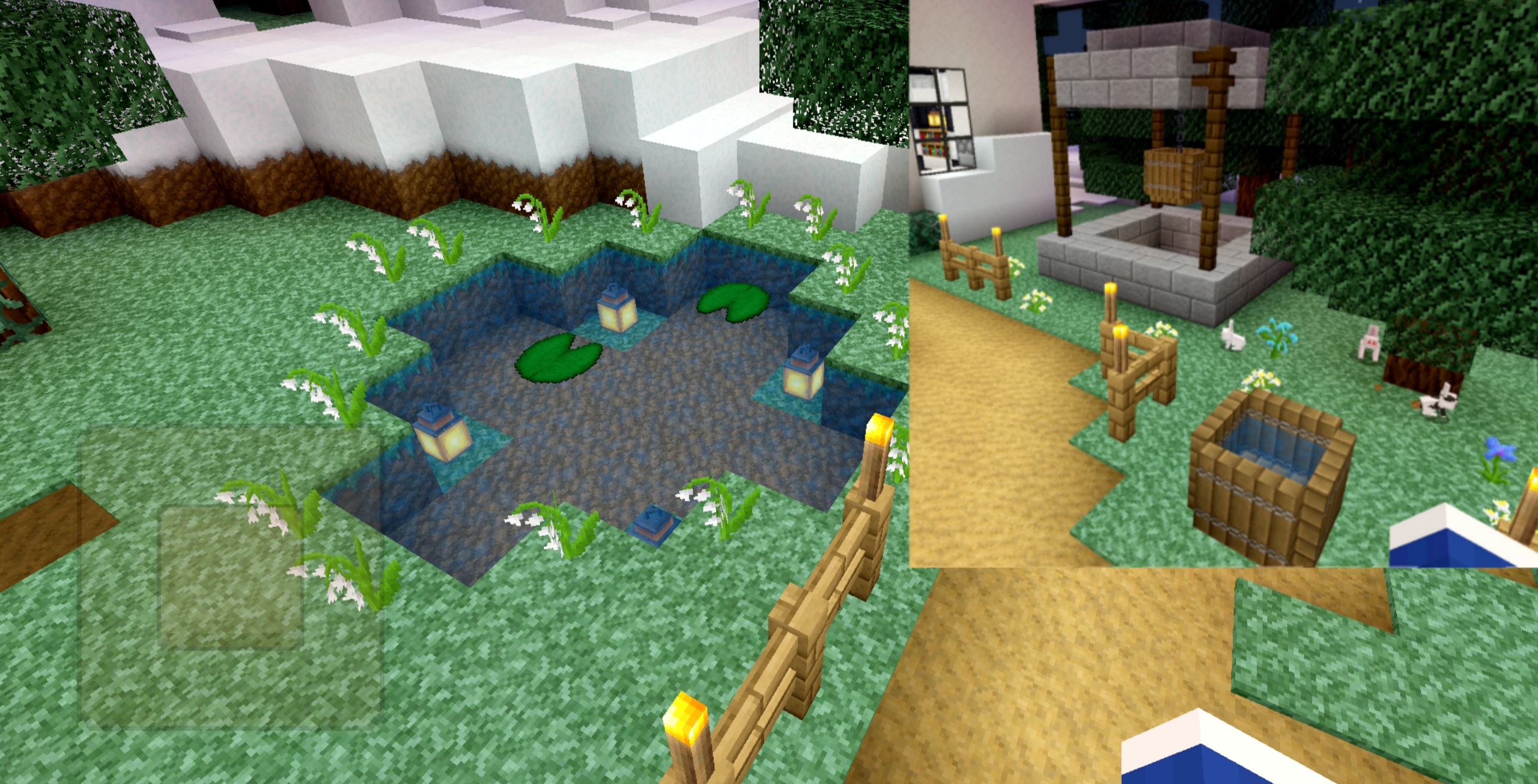 아, 모던한 집을 만들 때 추천하는 블록은 석영블록인데요, 하얗고 매끈해서 모던한 느낌이 팍 오르게 해 줍니다.